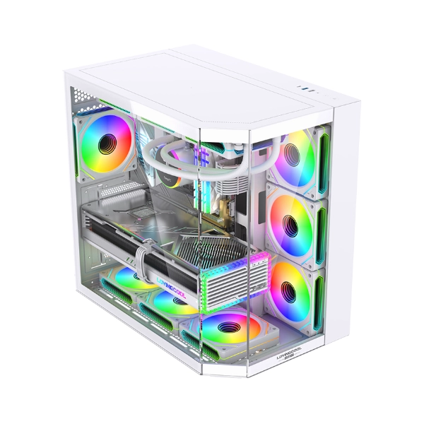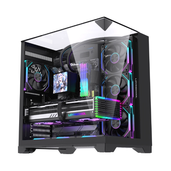 The LovingCool LC‑HXZ is best suited for gamers and creators who want a mid‑tower with full‑length GPU support, room for a 360 mm AIO, and extreme 10‑fan airflow in a tempered‑glass RGB showcase design. Key performance markers: ATX/m‑ATX/ITX compatibility, 420 mm GPU clearance, 155 mm cooler height, 3x SSD + 2x HDD storage, and seven PCI slots for expansion.