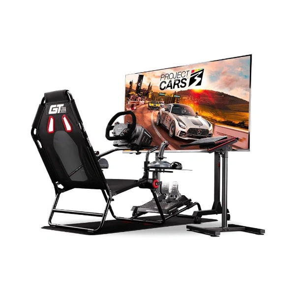 The Next Level Racing GTLite Foldable Simulator Cockpit is a compact, affordable GT-position racing cockpit designed for users with limited space who want a foldable solution for sim racing. Based on the popular F-GT Lite design but exclusively in GT position, this cockpit features Next Level Racing’s signature adjustment hubs that allow quick, tool-free adjustments while maintaining solid durability. The GTLite supports up to 10Nm of wheel torque (gear-driven and entry-level direct drive wheels) and includes adjustable wheel, gear shifter, and pedal positions for customized ergonomics. Its foldable design makes it perfect for storage after racing sessions, allowing it to be tucked away neatly when not in