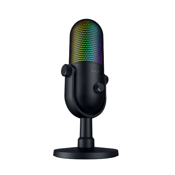 The Razer Seiren V3 Chroma is a professional-grade USB condenser microphone designed for streamers, gamers, and creators who demand exceptional clarity and visual impact. Featuring a supercardioid pickup pattern and customizable Razer Chroma RGB lighting, it captures your voice with precision while adding reactive visual flair that syncs effortlessly with your stream setup. Built with intuitive touch controls and smart features, the Seiren V3 Chroma combines studio-quality sound with seamless control and personalization.